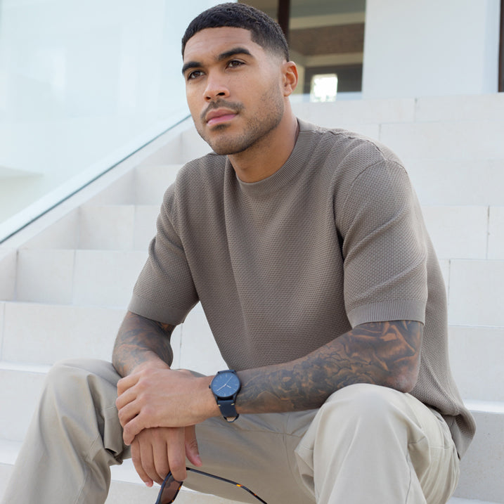 This is how you layer when it’s hot out. A lightweight brown knit with sand trousers brings that understated class without overdoing it. It’s calm. It’s composed. It’s the answer when you don’t want to wear “just a T-shirt.”