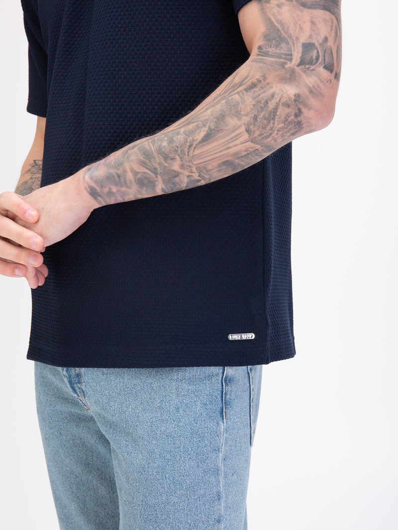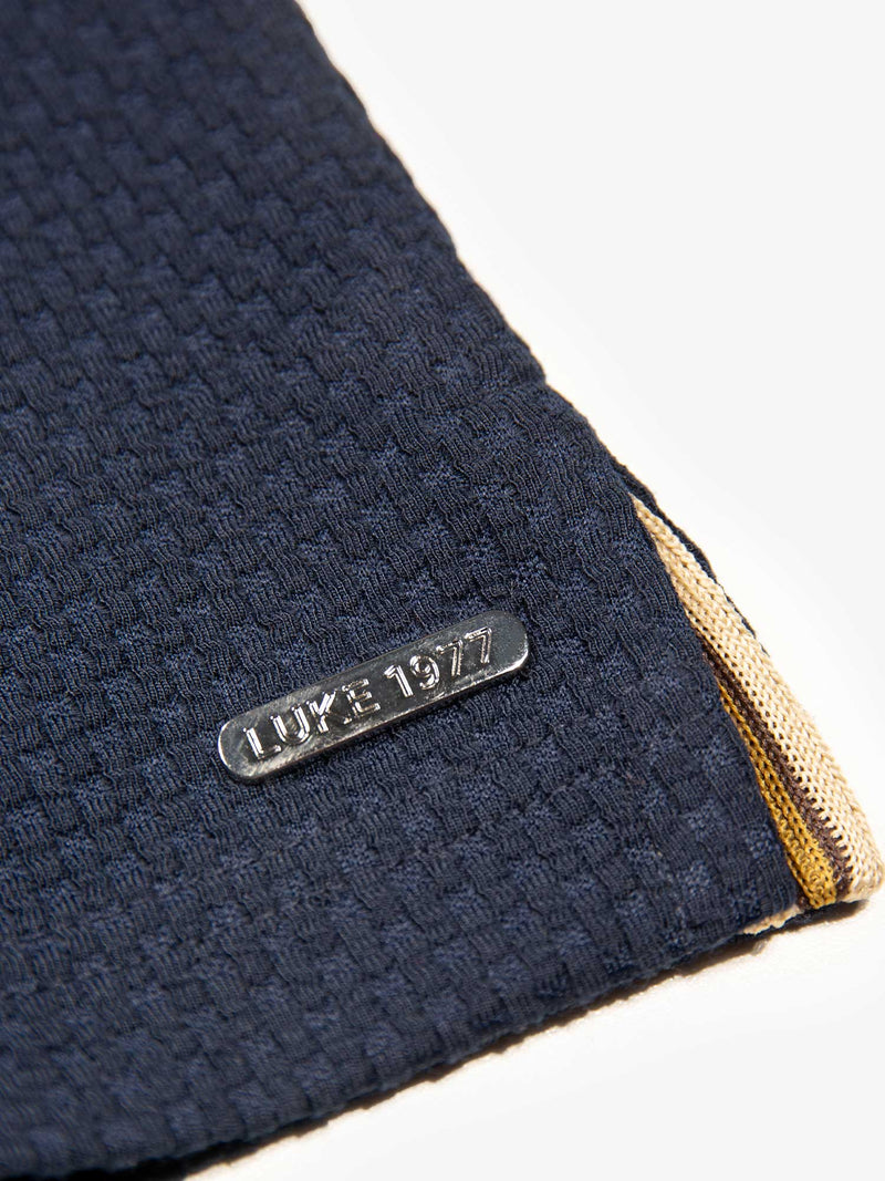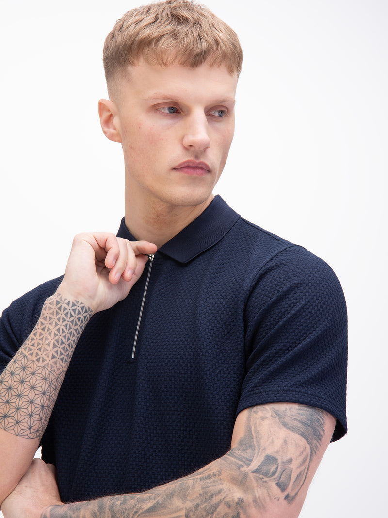 LUKE introduces this stylish zip neck Polo in a premium jacquard waffle texture fabric, cut to a regular fit and featuring a rib collar and chrome shine metal hardware, perfect for those smart-casual occasions. The look is signed off with the subtle LUKE1977 metal bar.