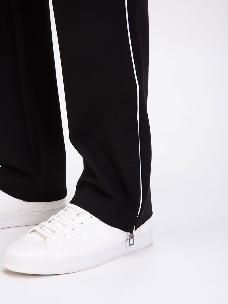 Contrast piping leg detail & side hem zips