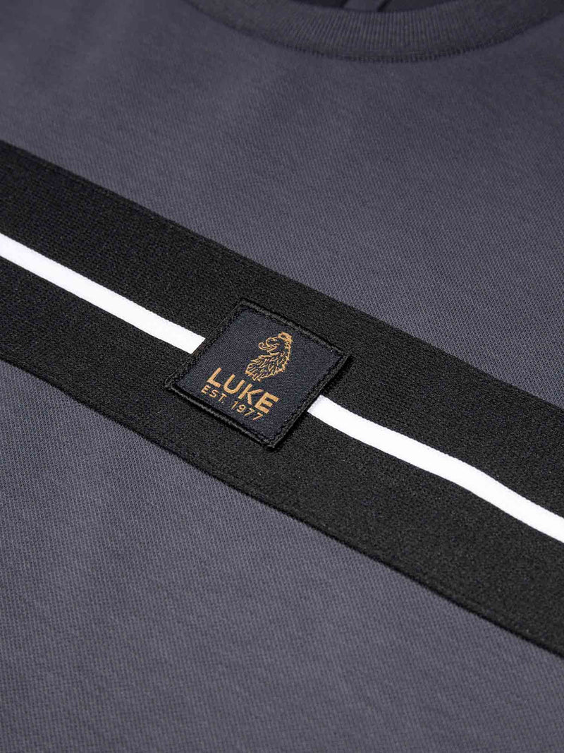 This stylish crew neck tee from LUKE is constructed from a premium, heavy weight Intertech Pique fabric and cut to a regular fit. It features a comfortable rib neck, and the chest is detailed with our classic striped tape. The look is then complete with the LUKE EST. 1977 woven badge on the left chest