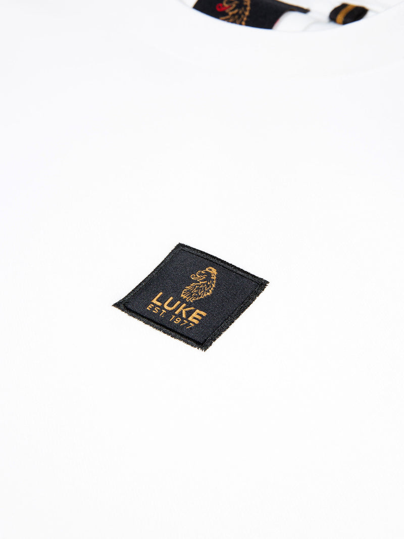 Upgrade your off-duty style with this luxurious crew neck tee from LUKE. Constructed from our premium, heavy weight, Intertech Pique fabric, it is cut to a regular fit and features our classic tape down the sleeves. This piece is then complete with the LUKE EST.1977 woven badge on the left chest.