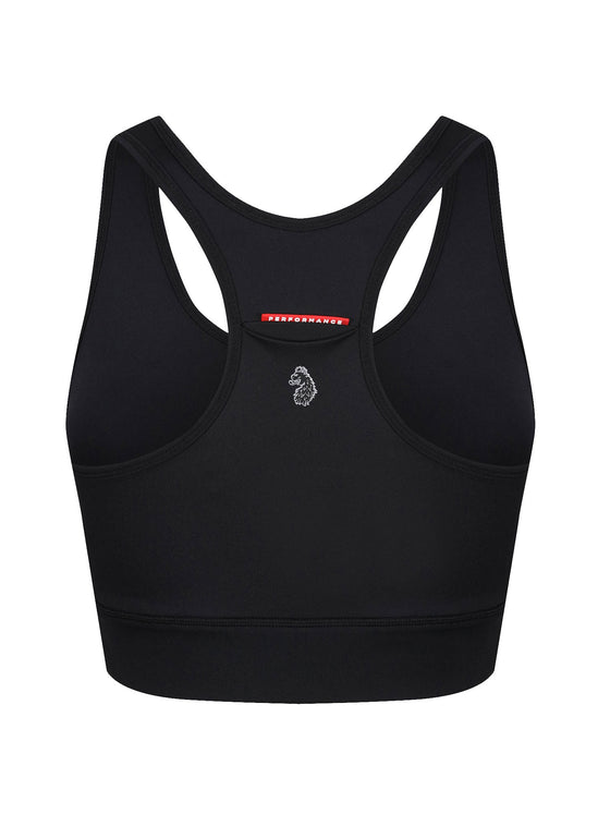 Update your workout wardrobe with this sports bra from the LUKE womenswear performance range. Cut with a round neck leading to a racer back for a supportive fit, this top is designed with recycled, moisture wicking materials which contain elastic fibres for ultimate comfort on the move. This piece is completed with the brands iconic rubberised lion head badge on the back panel.