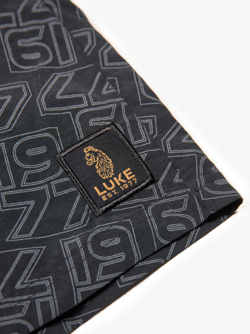 Get poolside-ready with this pair of swim shorts from LUKE. Cut from a quick-drying Nylon to a regular fit, they feature the modern collegiate overprint inspired by us reaching heritage status, 25 years of LUKE1977. They are fitted with a comfy drawcord waistband, for perfect fit, handy side pockets, for all your essentials and a super soft inner Jersey short, for ultimate comfort. They are then complete with a LUKE EST. 1977 woven badge on the left leg.